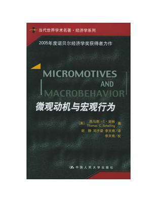 微观动机与宏观行为(美)托馬斯.C.謝林(Thomas C. Schelling)著 ; 謝靜,鄧子梁,李天有譯 - 第1版 - 北京 : 中國人民大學出版社, 2005[民94] - 230面 : 圖 ; 24公分 - 當代世界學術名著, 經濟學系列. - 當代世界學術名著. 經濟學系列.